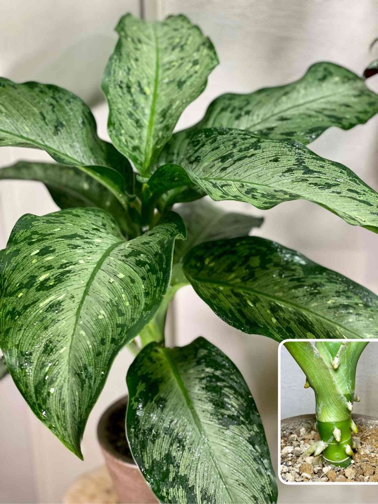 という凄まじい意気込みを感じさせる根っこを、ぶっとい茎から伸ばしてきたディフェンバキア•ティキ。