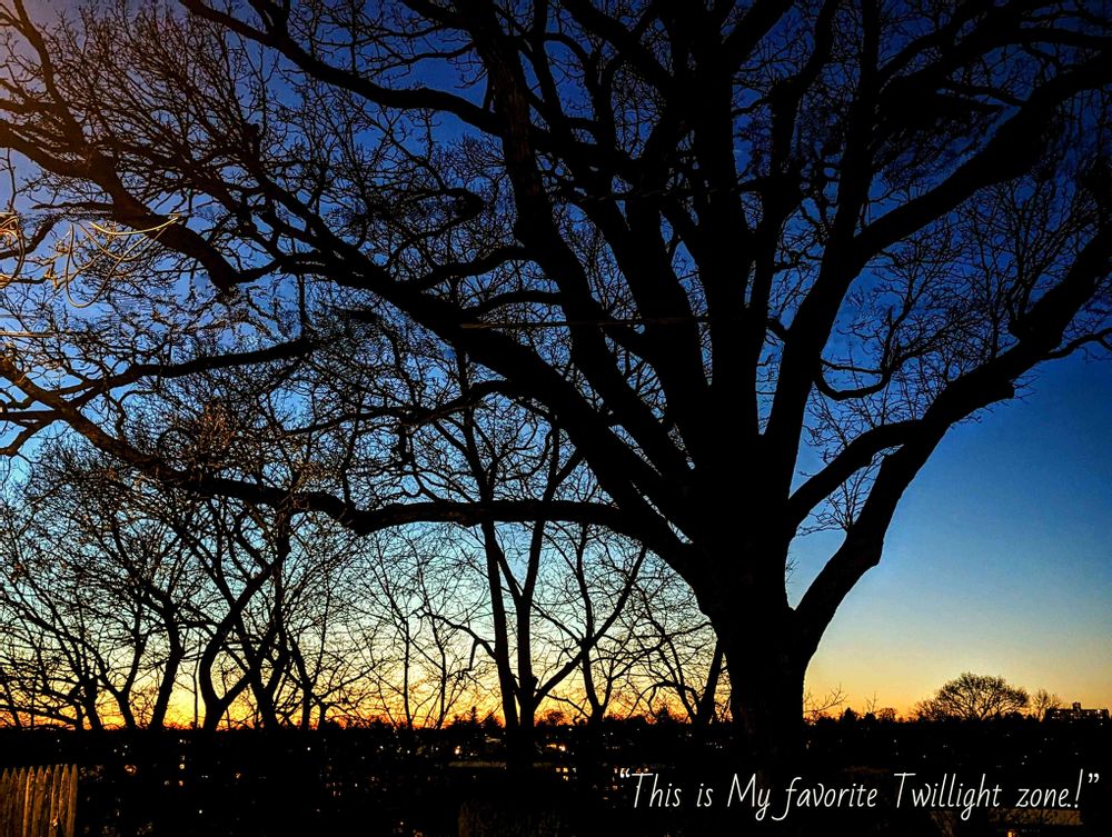 美しい夜空の幕開けと遠くの🌞の残光+木々の神秘的な姿...目の前に広がるこの全てになぜかとてもか感謝が込み上げて来ました。🙏♥️