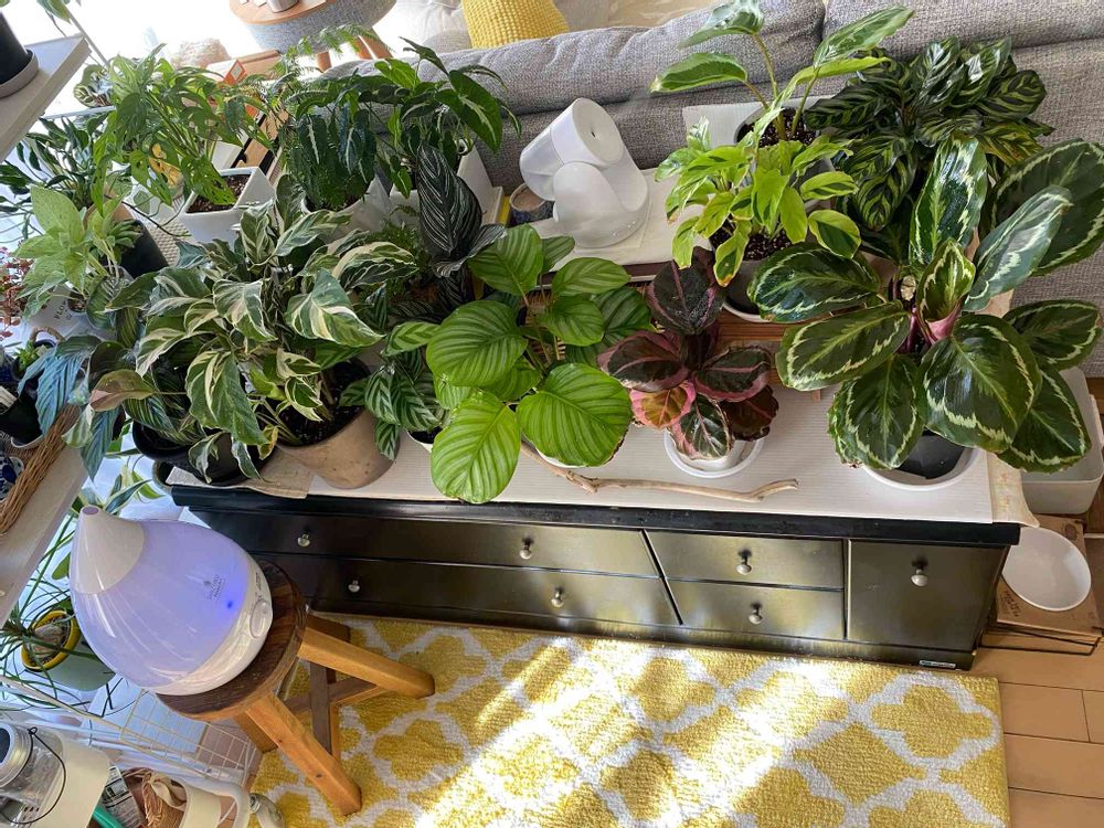 カラテアが増えて小さな加湿器では物足りないので、大きめの加湿器を設置😊