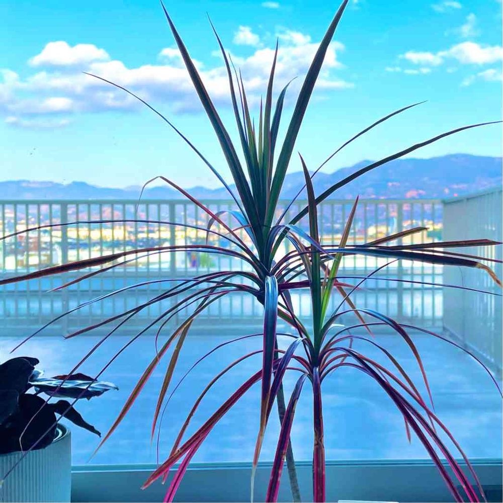 昔手のひらサイズの小さな苗を買ったのですが、今ではここまで成長してくれました🫢後ろのバルコニーには普段オリーブやユーカリを置いてます。お天気崩れそうだったので、軒下に移動させたところでした☁️☂️