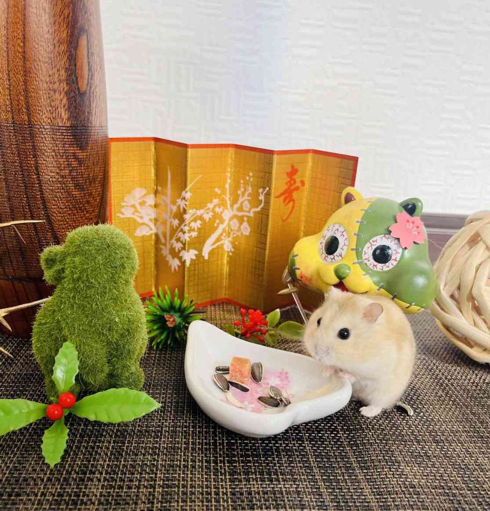 お花が大好きなハムスター〝ねずこ〟です🧟♀️🐹 絵本『ゾンビハムスターねずこ』読んでみてください💕 生息地は徳島県です❣️