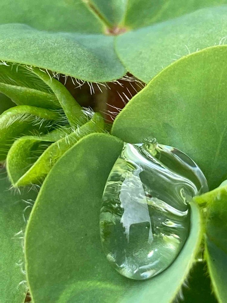 オキザリスの葉に残った昨夜の雨が美しい水晶のようです✨