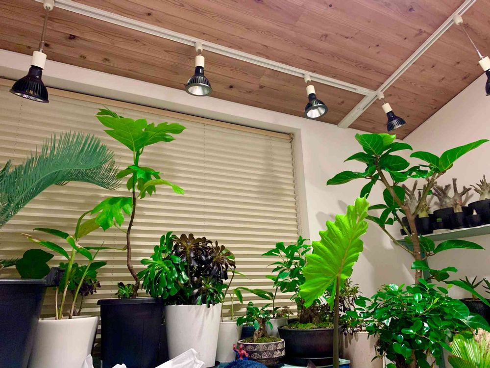 例年の冬は、葉が散った塊根や、寒さに弱いアガベ やサボテンなどを部屋に避難させてましたが、今シーズンは葉物を増やしたので、抗菌効果や乾燥する季節に湿度が高まったりして、部屋の空気が綺麗になるかも😊