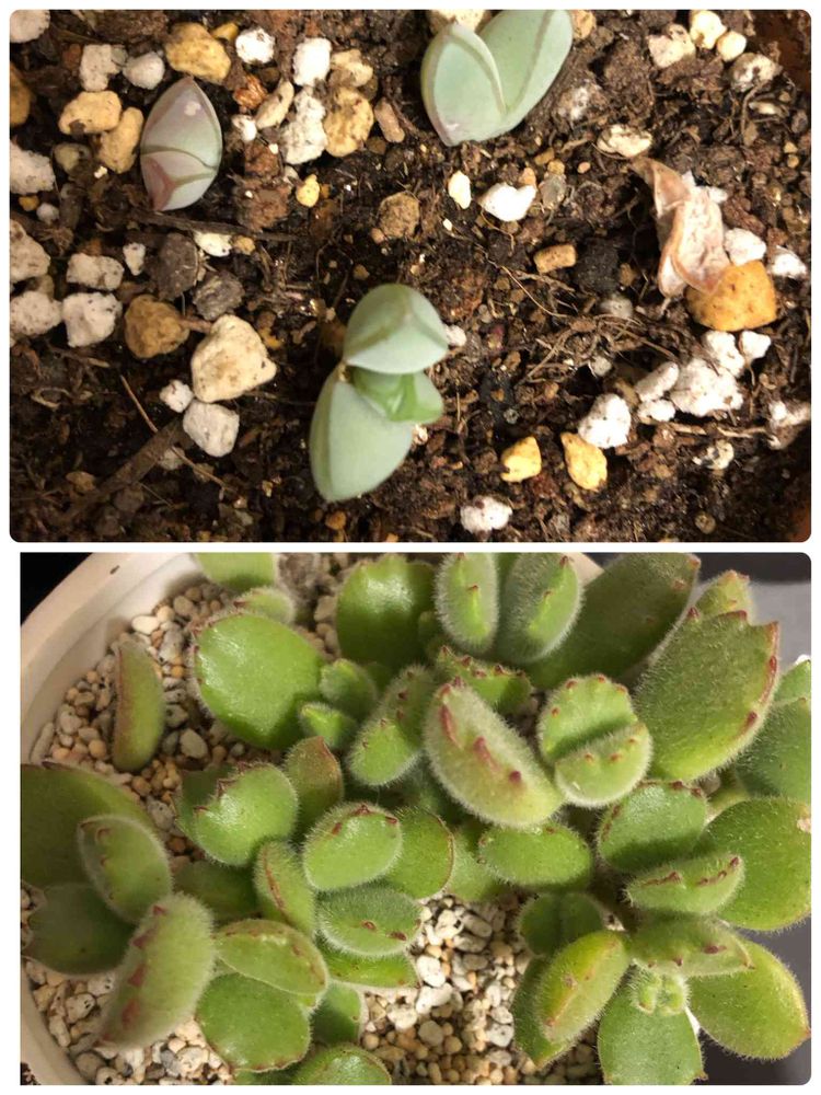 熊瞳子、夏も無事越せたと油断したら全部葉がボロボロと落ちて、取り敢えず挿せる葉は挿して、茎も整理して、秋に小さな葉が沢山付いて順調。先っぽの紅葉が可愛い🥹