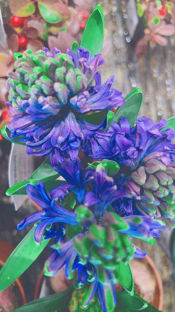 昨日、イケヤに行ってきたら近所のお花屋さんで同じ色💜のヒヤシンスありました。