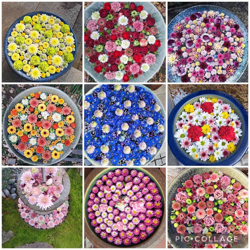 花手水のコラージュ画像最高に素敵ですね💕😊👍oki