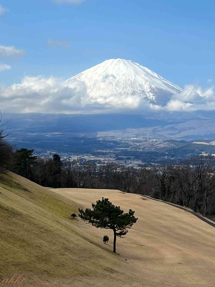 ゴルフ場🏌️♀️ 綺麗に芝刈ってありますね〜😊富士山も今日は雲が降りてきれいな雪山を見せてくれていますね🗻😃🎶