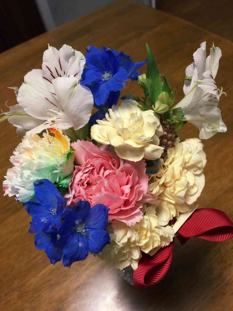 自分で選んで花束を作ったんですよ😁