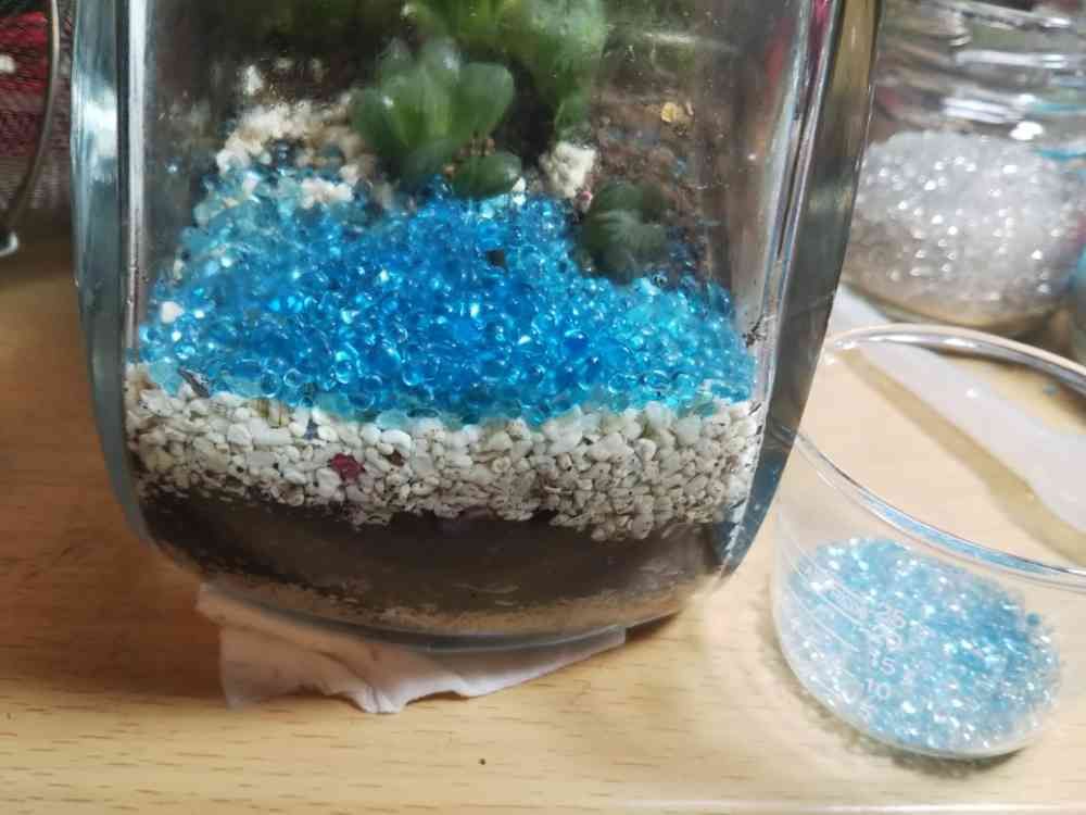 右にあるガラスの小鉢には、小粒で、青とクリスタルを混ぜています。上にばらまきましょう✨😃