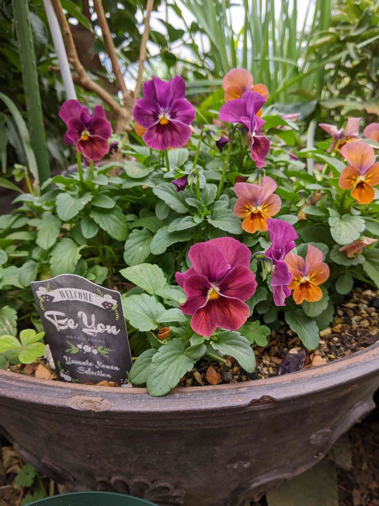 大鉢に、ゆったり♨️🌱浸かったビオラさん達!幸せですか?と尋ねてみた!🤔🌼🙄🤗