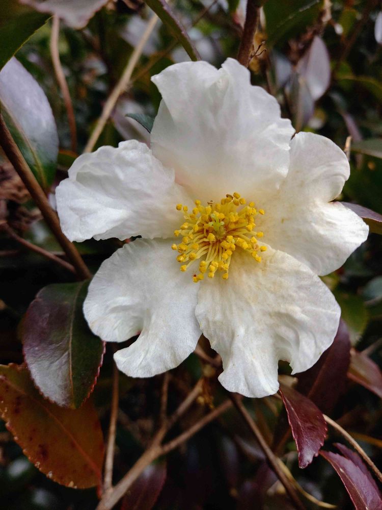 花びらがはらはらと散っていたので山茶花に違いないのですが、山裾に咲いていました。
