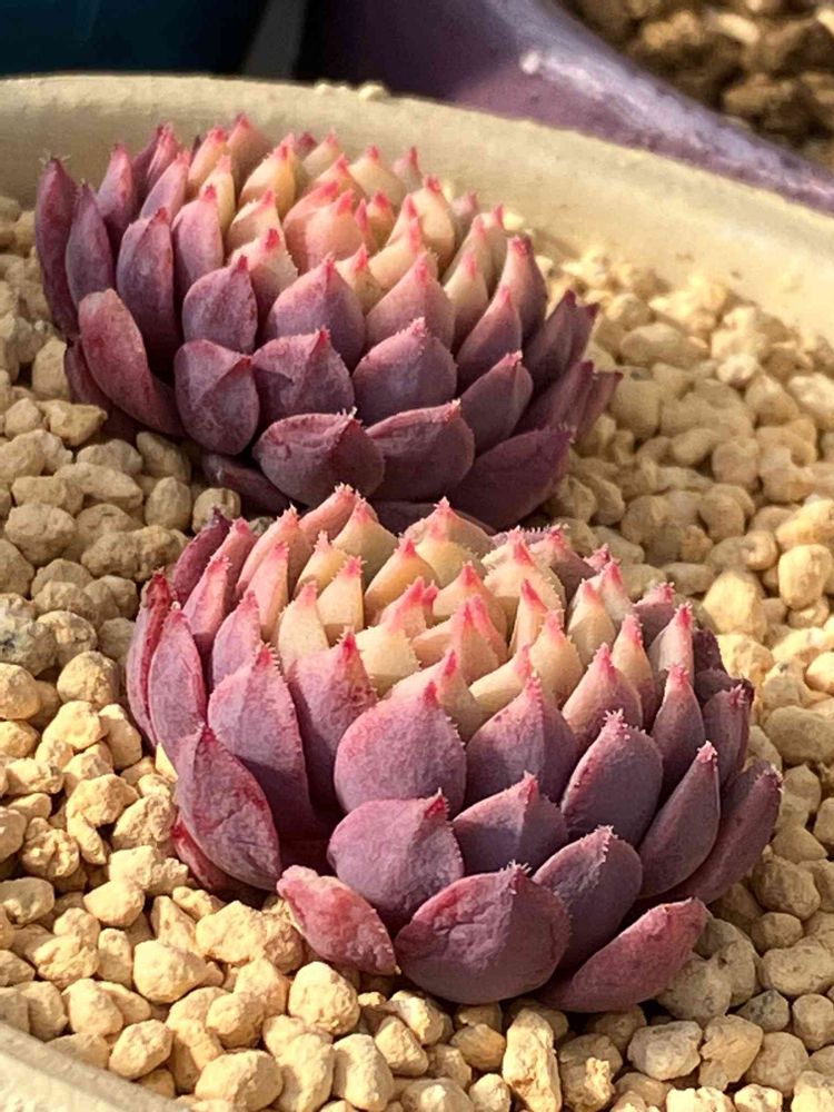 春に様子がおかしくてバラした子。群生なりかけからこの子達だけ生き残り💦他に辛うじて育った葉挿しの赤ちゃんが2つ…いつかまとめて大きくなって欲しい✨小さいけどこんなに可愛い色に💕