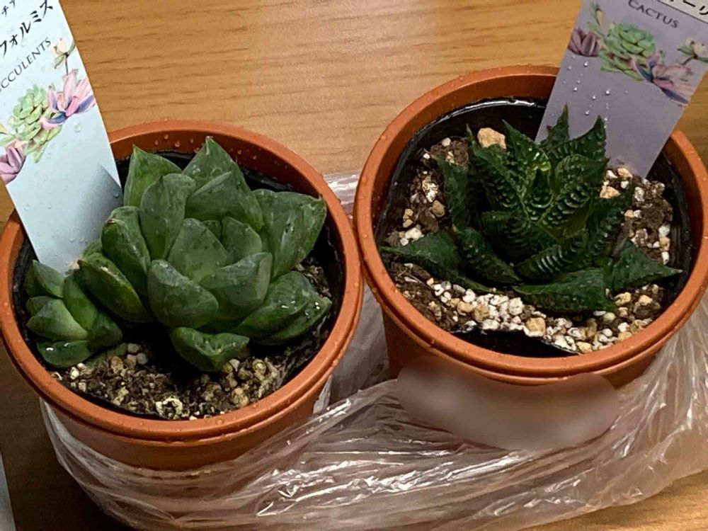 ハオルチア・シンビフォルミスとハオルチア・リミフォリア(瑠璃殿)。2022年10月7日に購入。それぞれ3号鉢で198円。