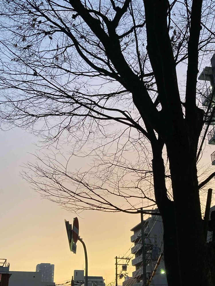 おはようございます。通勤途中の何気ない風景の中にも感動や発見はある。欅と朝焼け! 2人が出会ったからこそ見られた景色🤗 今日もがんばっていきましょう👍✨
