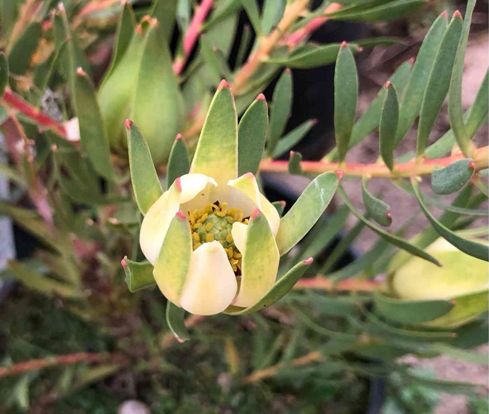 秋にお迎えしたレウカデンドロン ファイアーグローが咲き始めました✨✨。