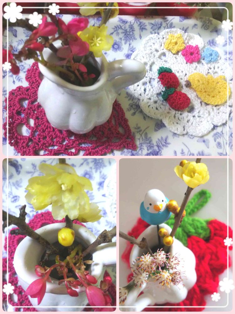 庭のロウバイの蕾、まだ咲かず、水挿しで咲きました💛