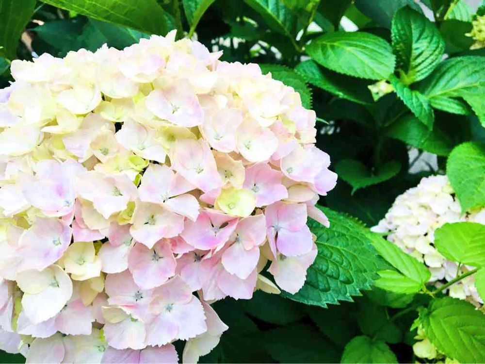 庭先の立派な紫陽花、ついに開花してました〜淡い感じがとても好きです。夢カワ色🌈🦄🍭
