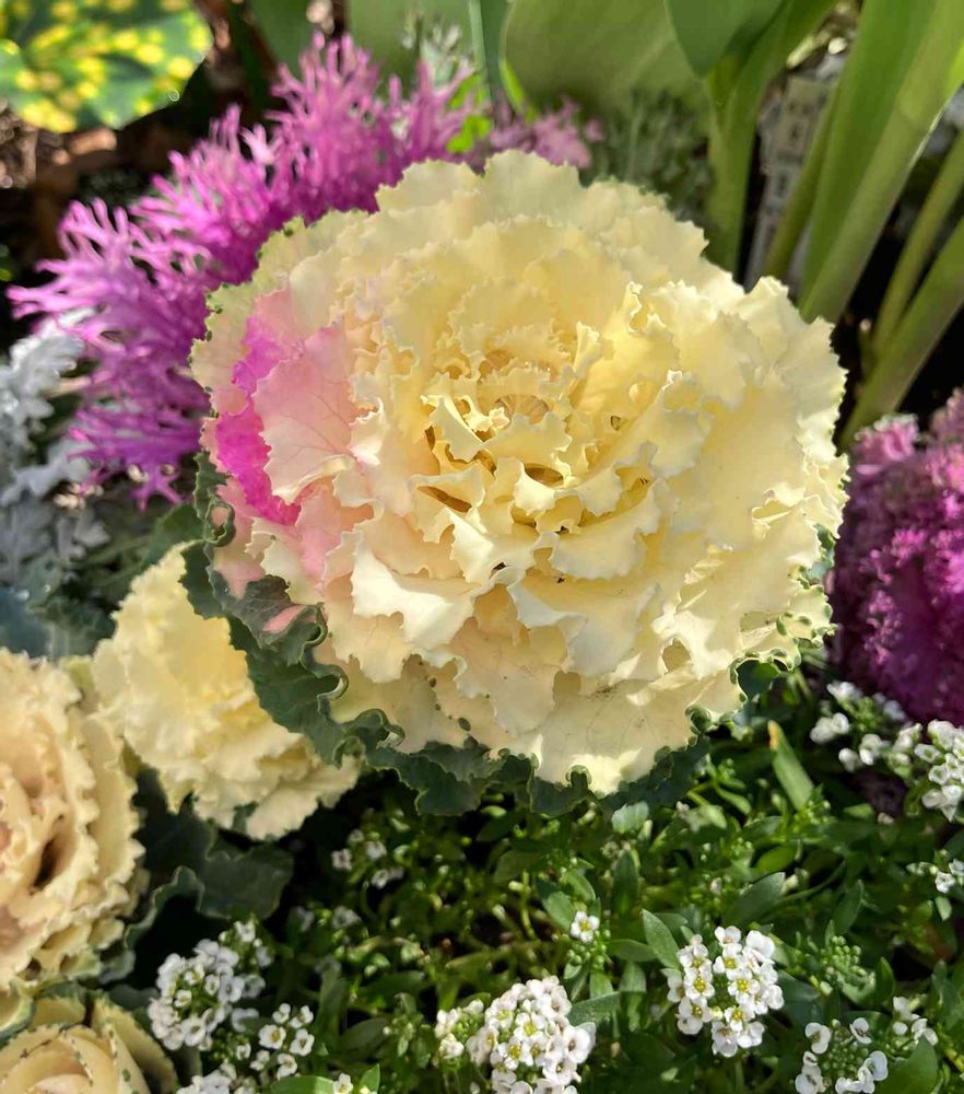 最近では色々な葉牡丹が出回っているようですが、今日紅白のおめでたい葉牡丹の実物を初めて見ました