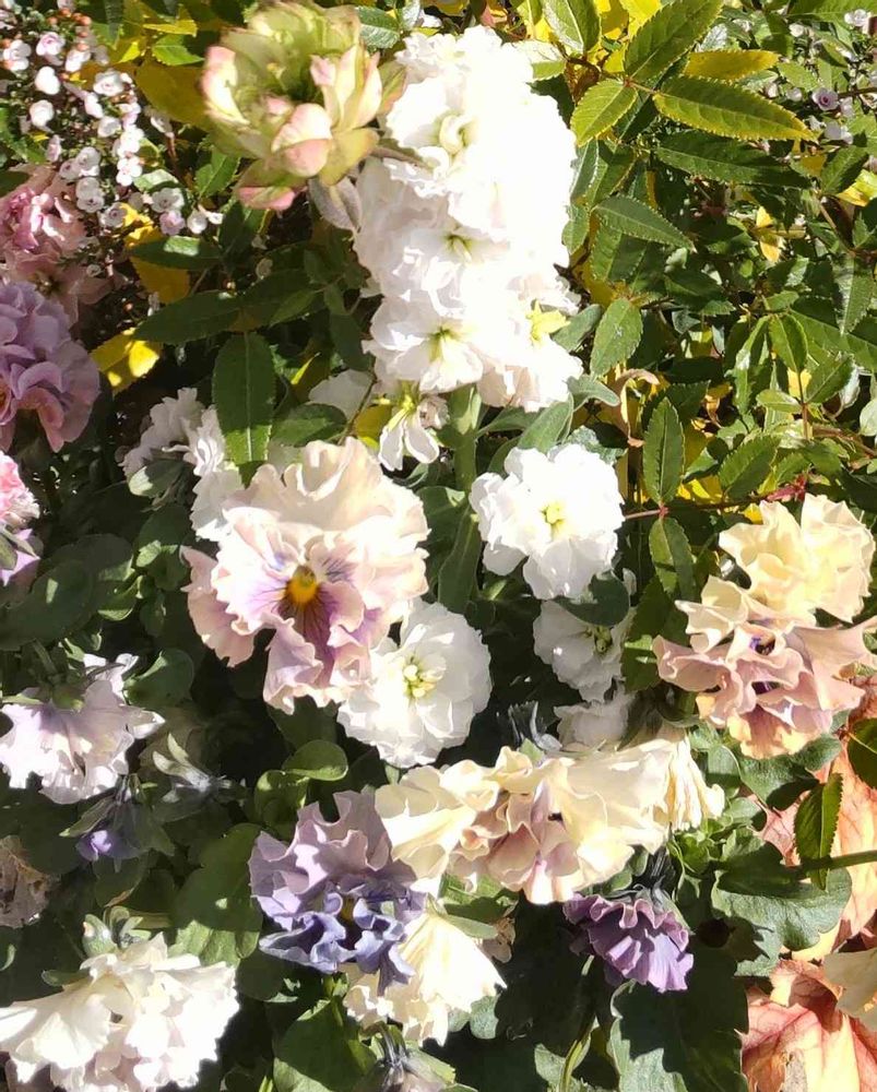 優しい色合わせでフリルパンジー、とてもかわいい写真です。