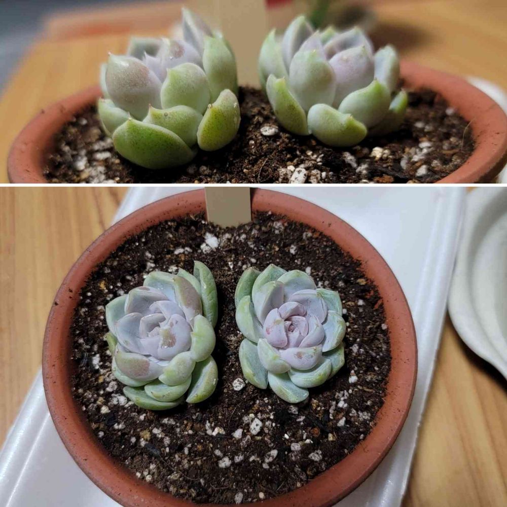 仕方がないので根っこが出たら植え替える予定で2.5号サイズの浅い鉢に2つ一緒にin🪴🪴