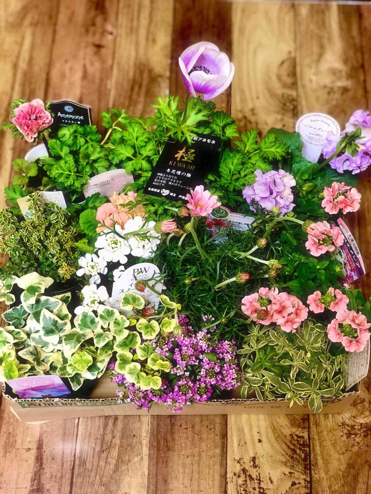 はじめまして😊沢山見て頂きありがとうございます❣️箱いっぱいのお花達を見るとワクワクします。どんな寄せ植えが出来るのか楽しみです😍🎶また見せてくださいね💕