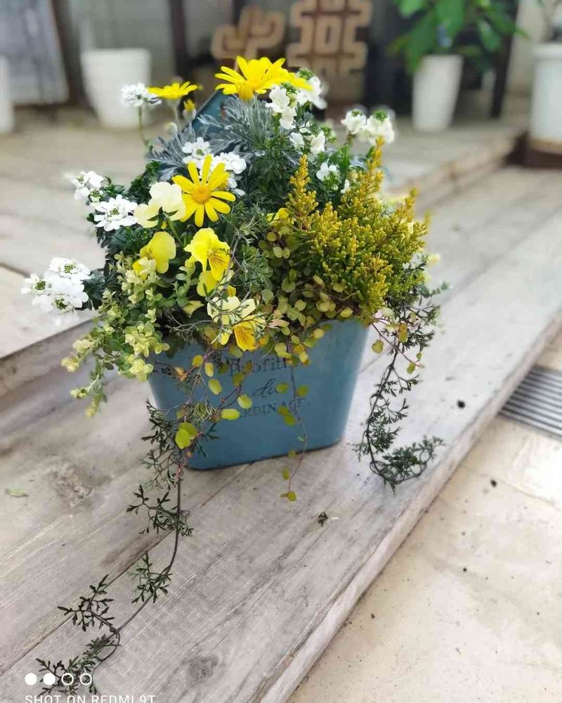 サビサビのブリキ鉢も、春っぽく見えて、お花の力はすごいです💛🌼
