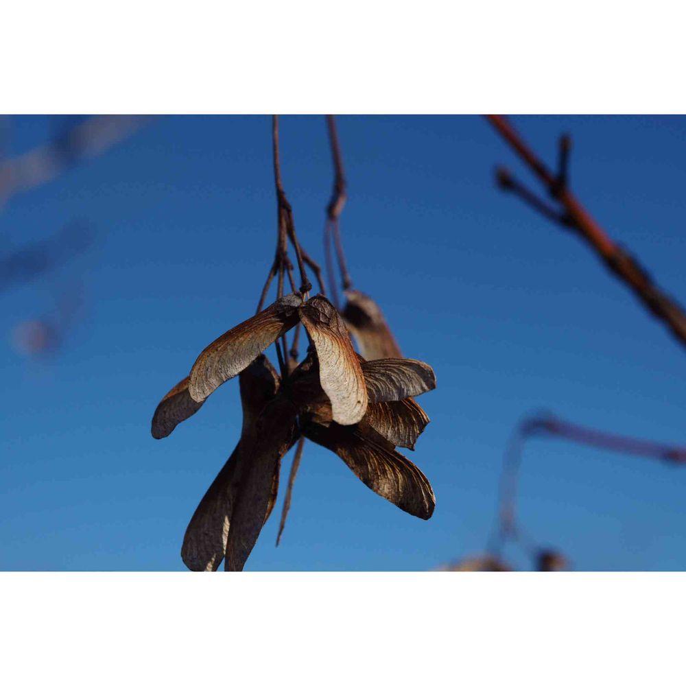 青空に枯れ枯れのモミジの種が良く似合います...