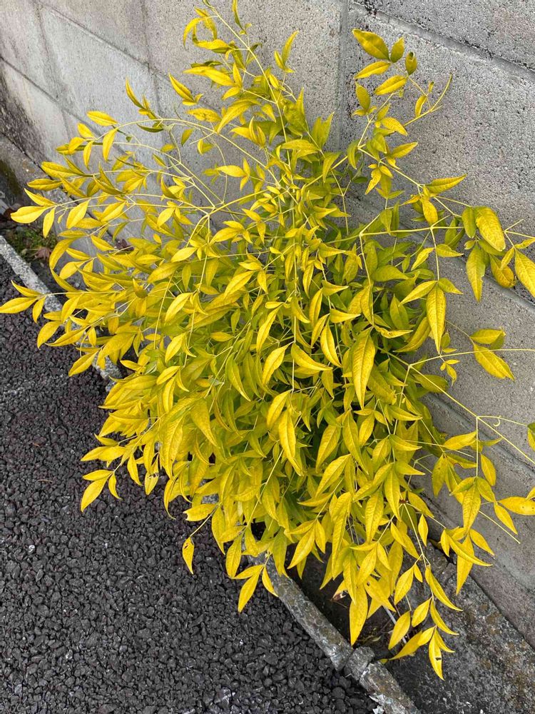 南天ならば、はじめて見る衝撃的な黄葉💛