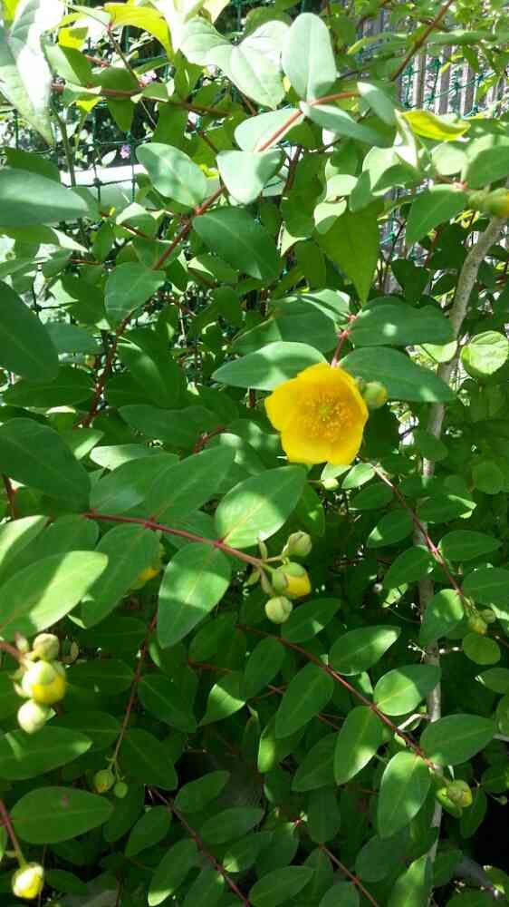 金糸梅の一番花が咲きました!こぼれ種子からプランターに勝手に育ちました!