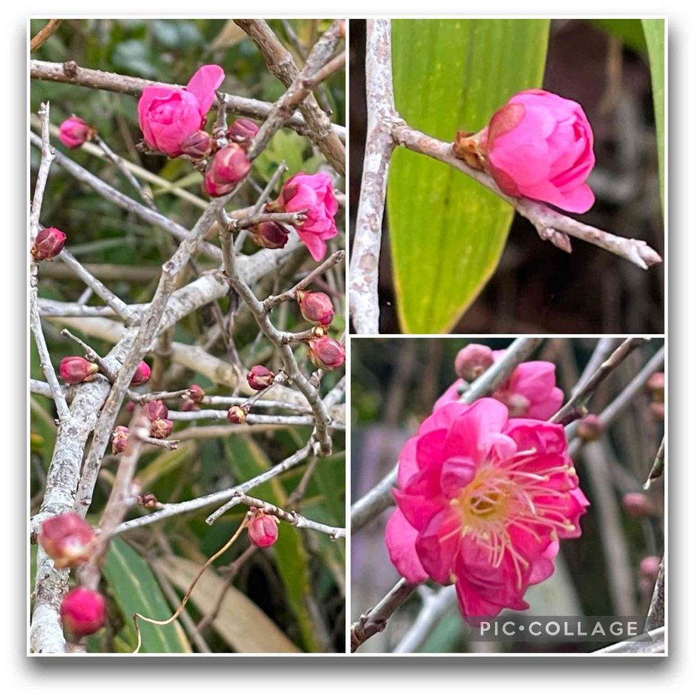 大意:大寒の日に紅梅の開花が増えて、なんだか暖かい感じがしました。