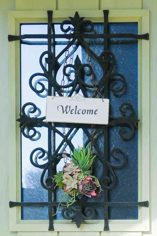 玄関に多肉ボールを飾ってみました。