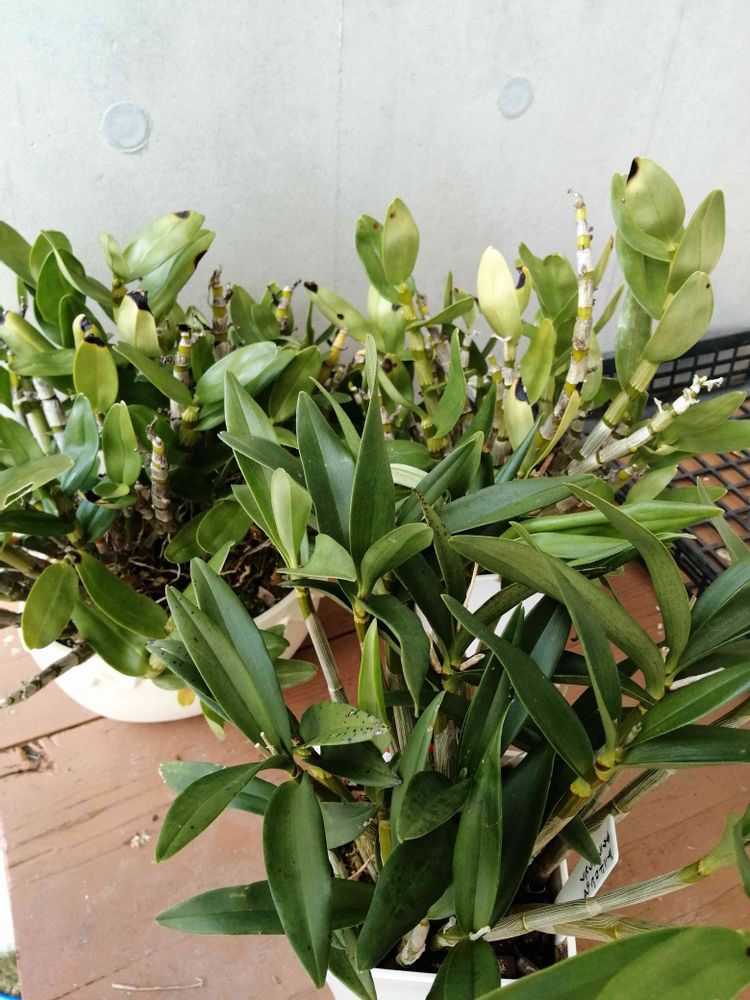 軒下の放置デンドロビウム、流石に明日の最低気温は−3℃位になるので部屋に取り込もうかな〜🤔