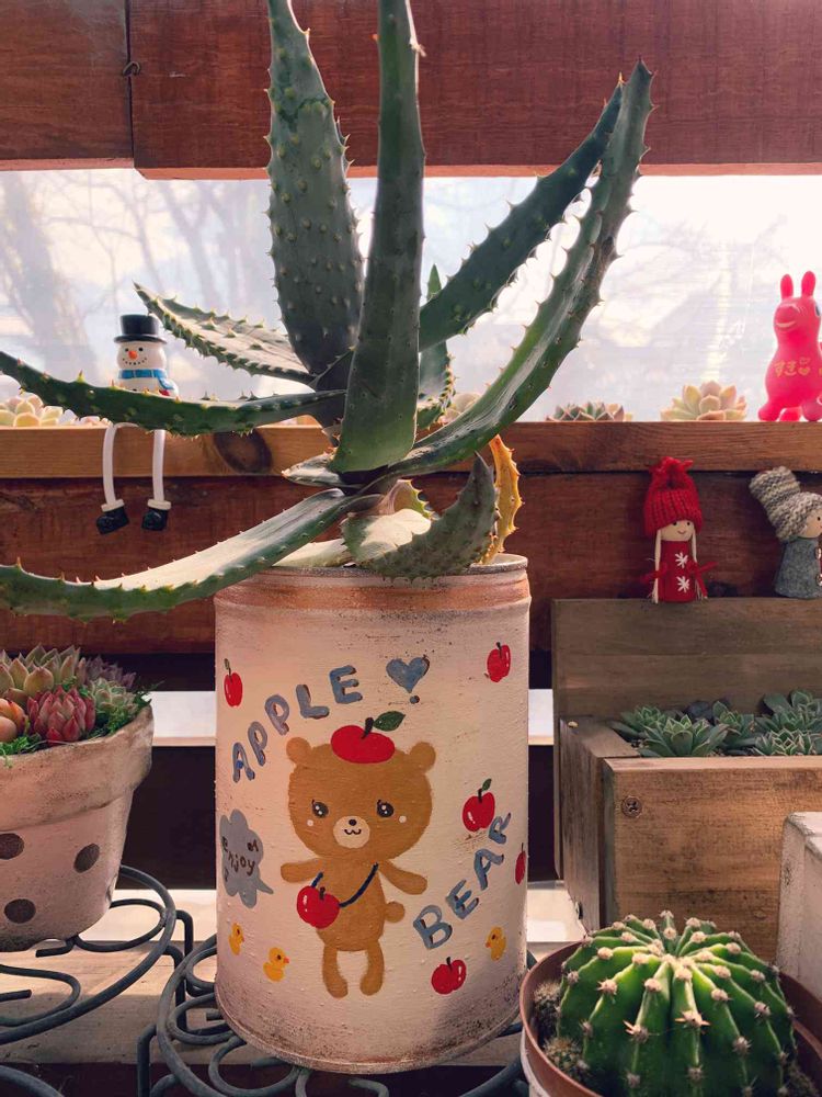 時間がかかってもこんな可愛いリメ缶だったらアロエも待った甲斐がありますね
