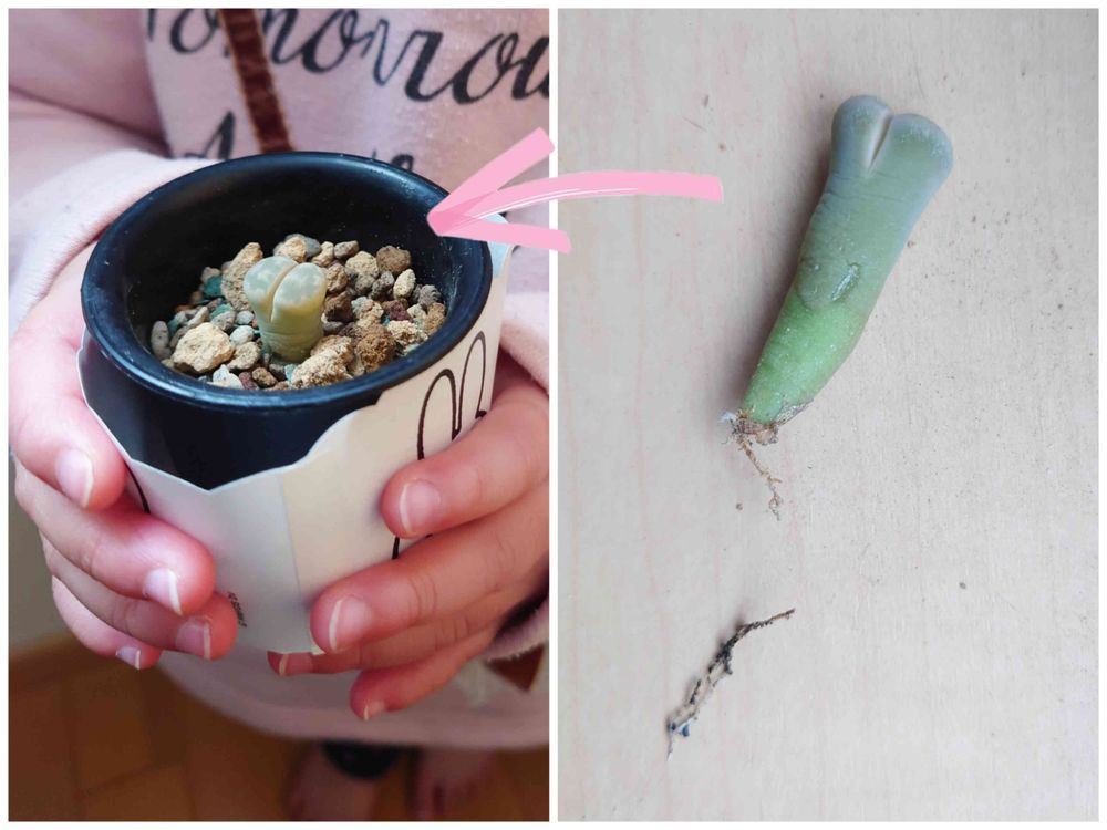 少し大きくなってきたかな?と思って娘と見ていたら…ズボッと抜かれてしまい、、せっかく生えてきていた根が千切れました😭(右)