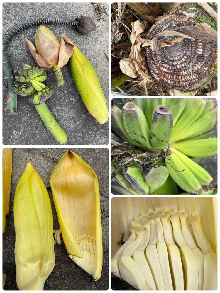 切り倒したバナナから蕾やら実が😳