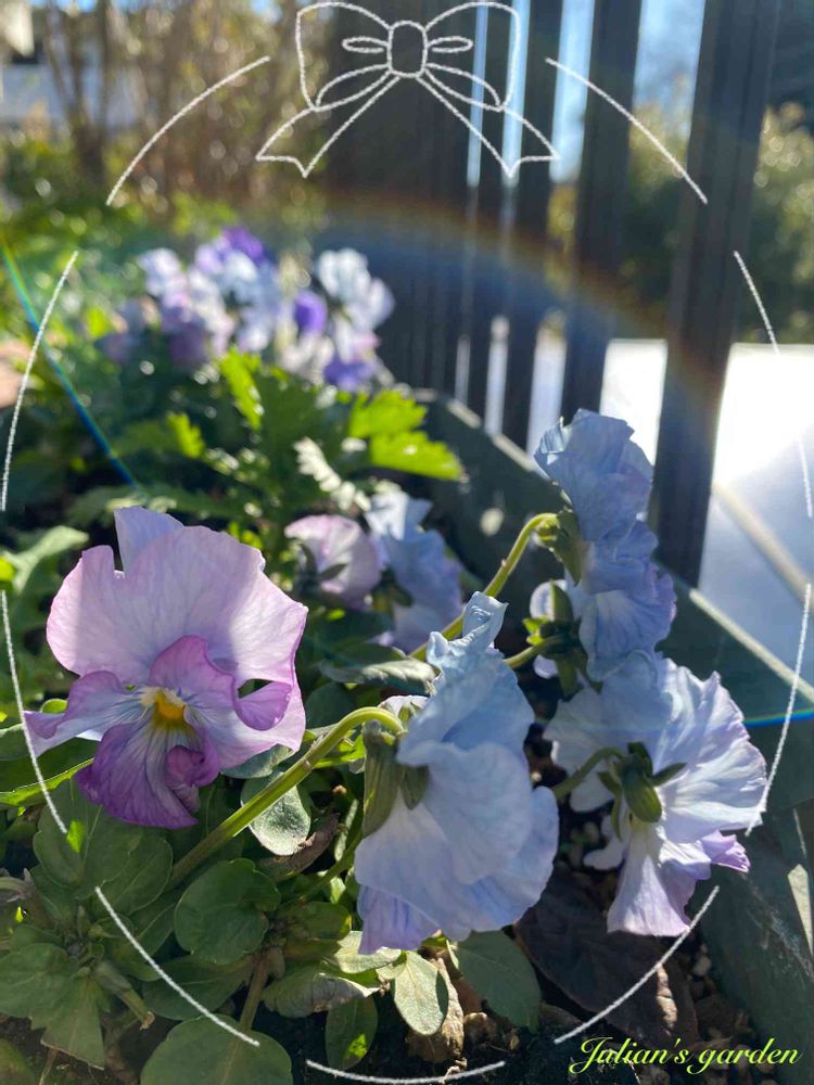 パンジーもとても可愛いけど、何よりそのすぐ近くに虹🌈がかかるなんて❣️