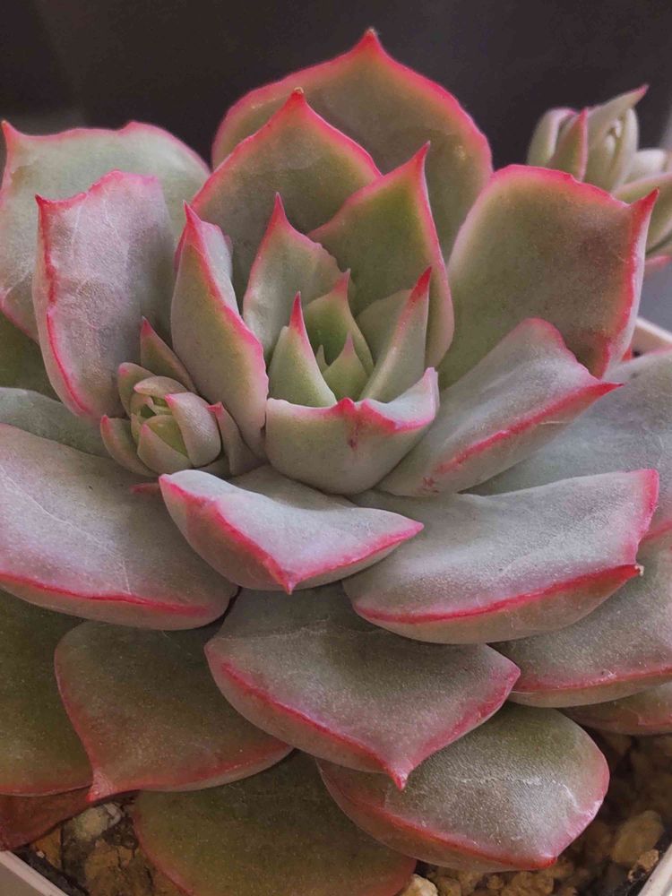 爪先美人な エケベリア・エゲリアさんも花芽ちゃんを 2本打ち上げてます😻💚🤍💗