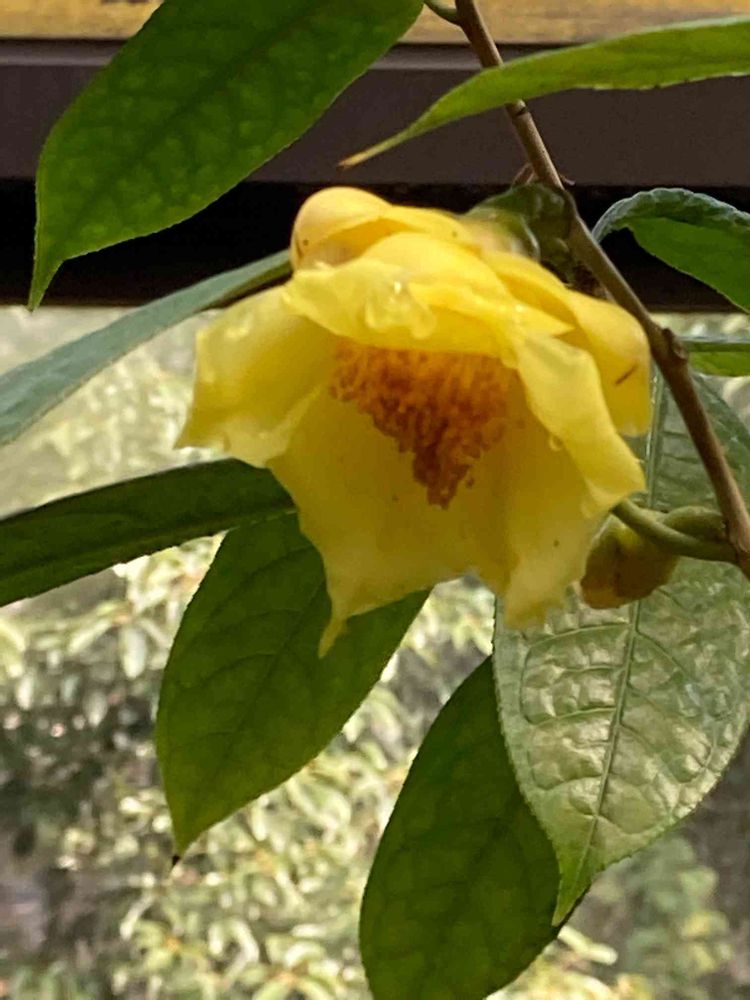 昨日服部緑地都市緑化植物園のカメリアルームに咲いているキンカチャを見に行ってきました。