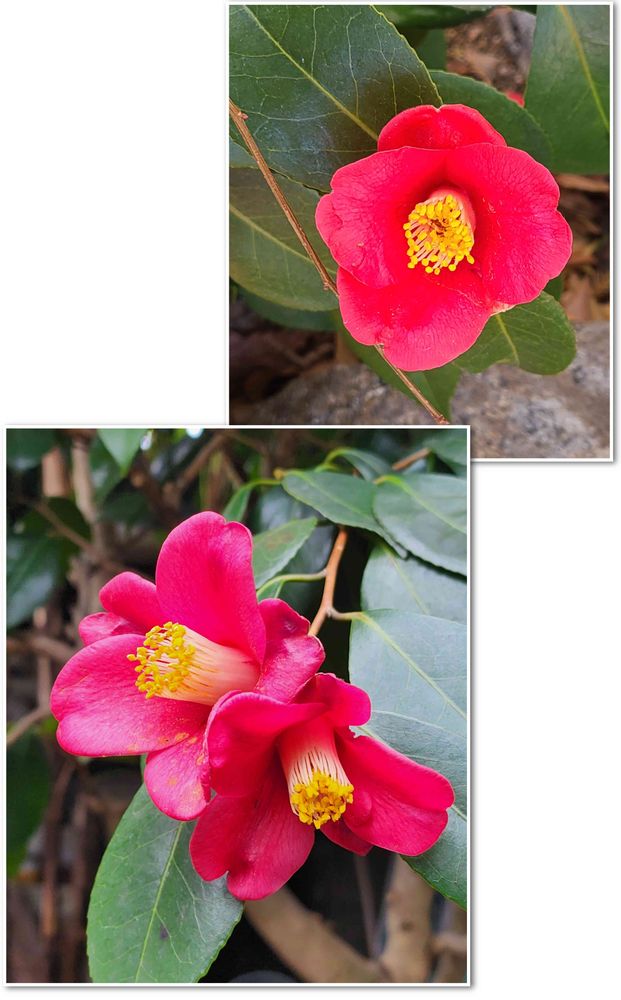 義父が旅立った時、一輪目のツバキが地面近くにひっそり咲いていました。