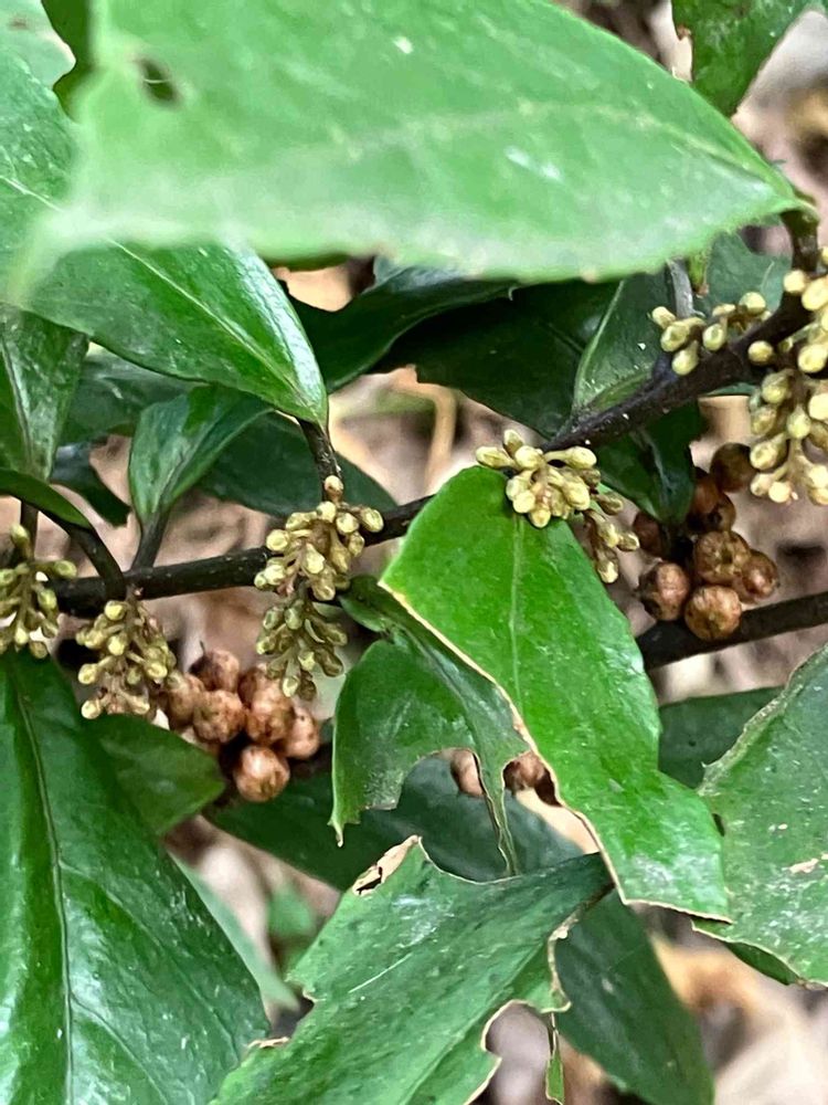伊豆の千両に似た❓白い実がつくそうですが もう行き過ぎた❓年期の入った色に💧ツボミは春に咲くよ〜🌸