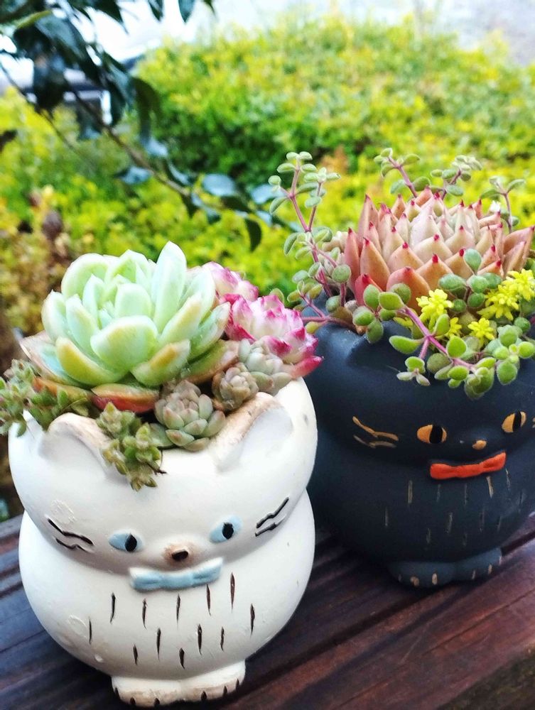 このニャンコ鉢🐱購入してから、何を植えようか、迷ってずっと飾ってたけど、トロピカルガーデンの苗でやっと寄せ植え出来たよ。我が家のカット苗も混ぜ混ぜしてるけどね😁😆🤭