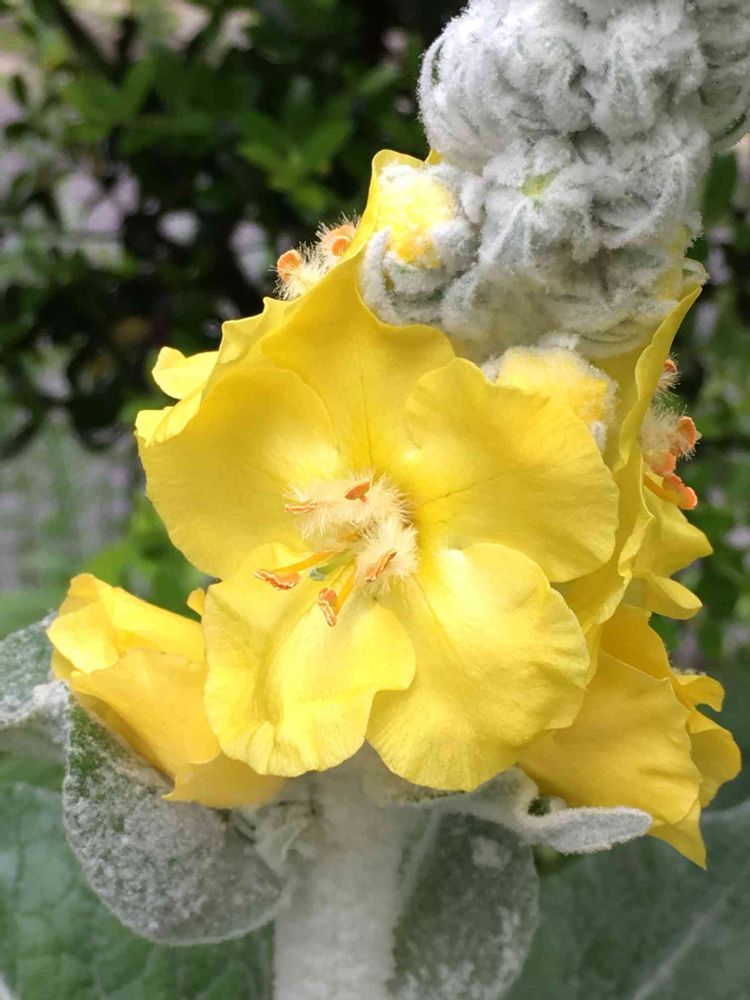 これは普通に二年草の草花です。同じバーバスカムでも多年草も有りますが、この品種はモケモケが付いている時点で蒸し暑いのには弱いということなのでしょうね😅