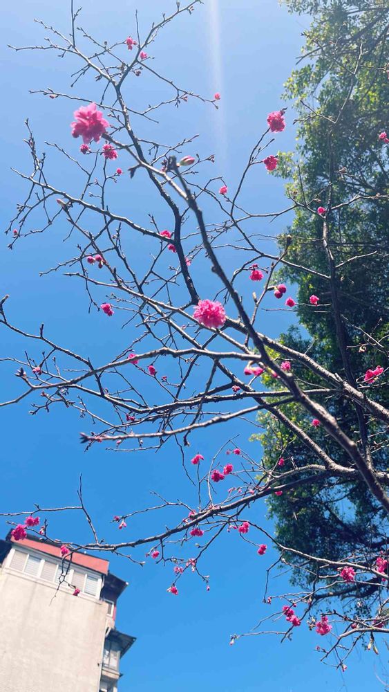 台湾・中国南部原産の緋寒桜は日本の河津桜の片親だとか…🇹🇼🇯🇵との縁のある親睦の🌸ですね。^_^