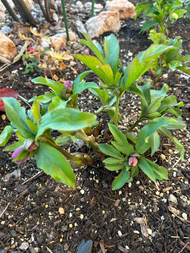 このクリスマスローズは花芽がだいぶ大きくなってきました。