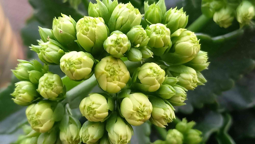 小さめの鉢に入ってたから葉から少し下がぎゅっとなって 植え替える予定だけど、全体に密集してて花も少ないから何とかならないかなと思っ待てるとこです。