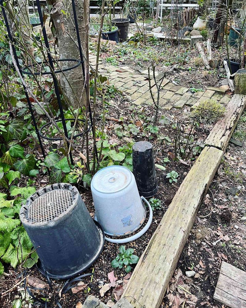 地植えのクリスマスローズに、バケツやら鉢やらかぶせて、大雪対策☃️