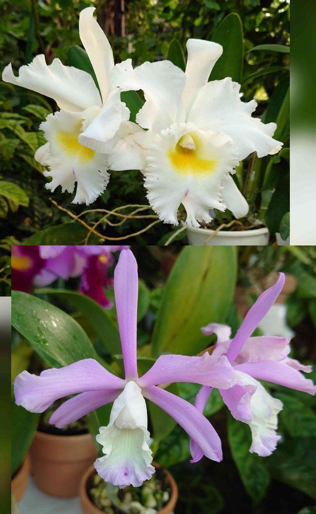 白と優しい紫色のカトレア、コラージュが綺麗ですね😍🤍💗🌿