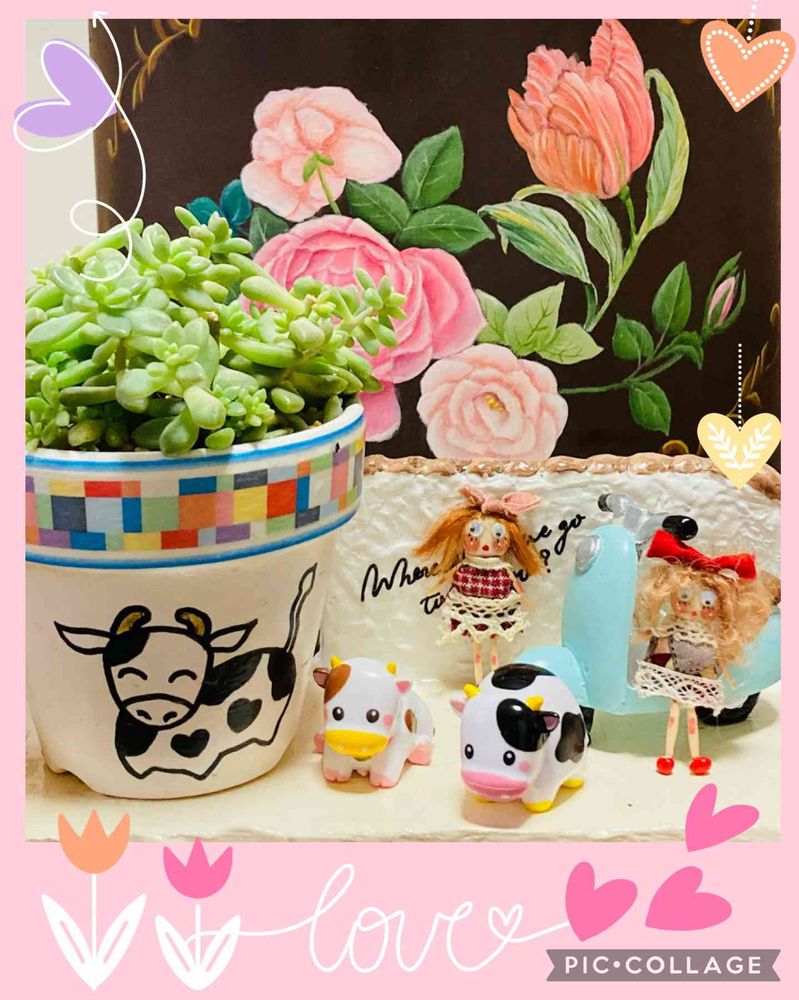 なつ子チャンの優しい🐄リメ鉢に姫秋麗モリモリ💚