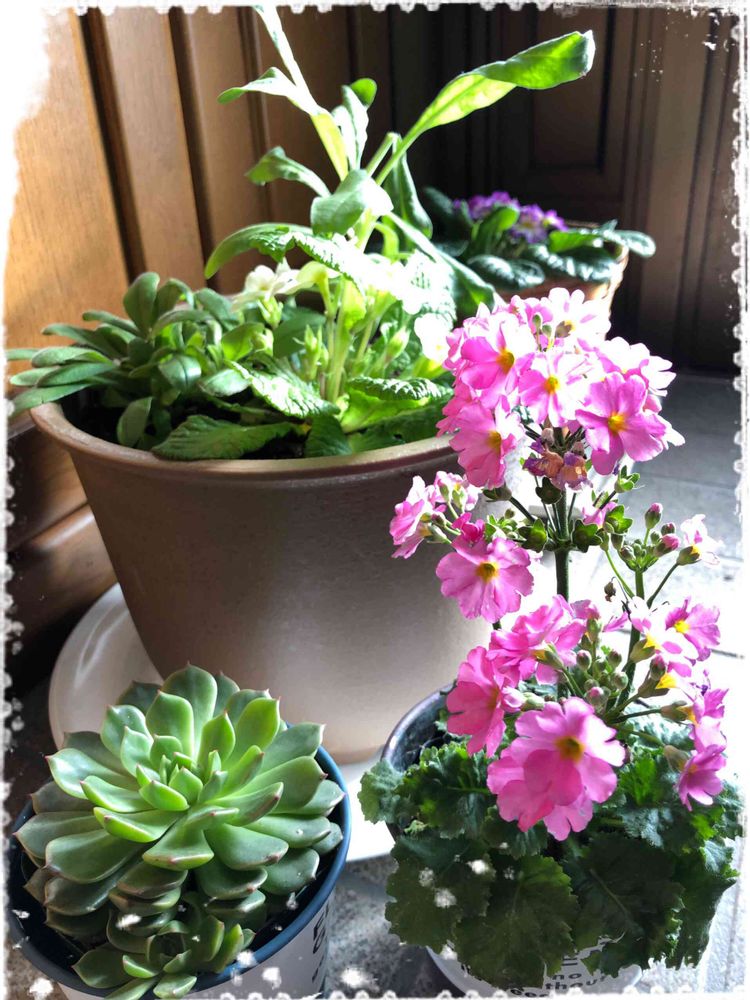 昨日迎えて来た多肉ちゃんオリビアとプリムラマラコイデス、持ってるのよりも少しピンクが薄い色、まだ寒いので植え替えてなくて玄関で避難中です、多肉ちゃんには赤ちゃんができています💓🥰