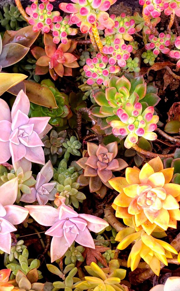 南側花壇の地植え多肉ちゃん達😻💗💛🧡💚
